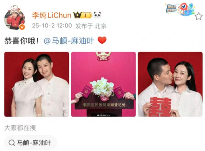 虽说李纯的演技很好,但却是一个很低调的演员,一直致力于将剧拍好,没想到李纯也已经37岁了,而且稳定谈恋爱买房再到结婚,这不,在10月2日李纯和男朋友马頔在社交平台上官宣并晒出了结婚照,两人在民政局大大方方的领证,还配文:恭喜你哦!